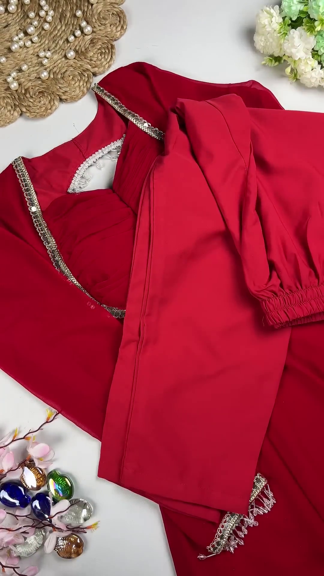 Crimson Passion Designer Ruched Gown with Crystal Accents
