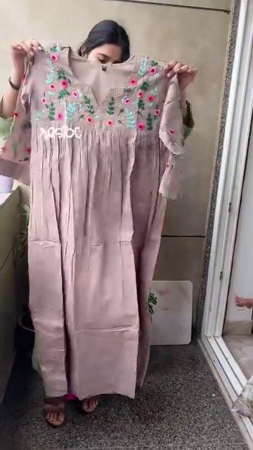 + Free ShippingThis beautiful dusty rose A-line kurti is a perfect blend of elegance and comfort. Featuring vibrant floral embroidery in shades of pink and green on the yoke and sleeves, it adds a fresh, festive touch to your wardrobe. Made from soft, breathable fabric with gentle gathers below the bust, it’s ideal for all-day wear—whether you’re heading to a casual outing or a festive get-together. Style it with minimal accessories for a graceful ethnic look.