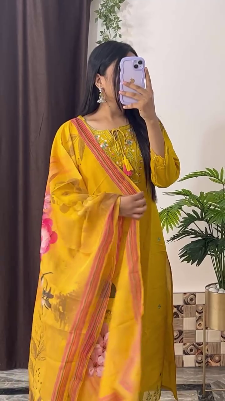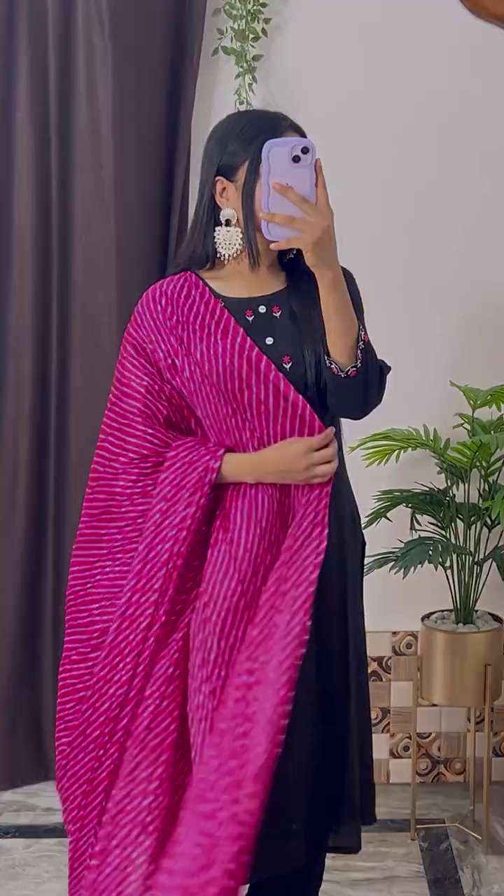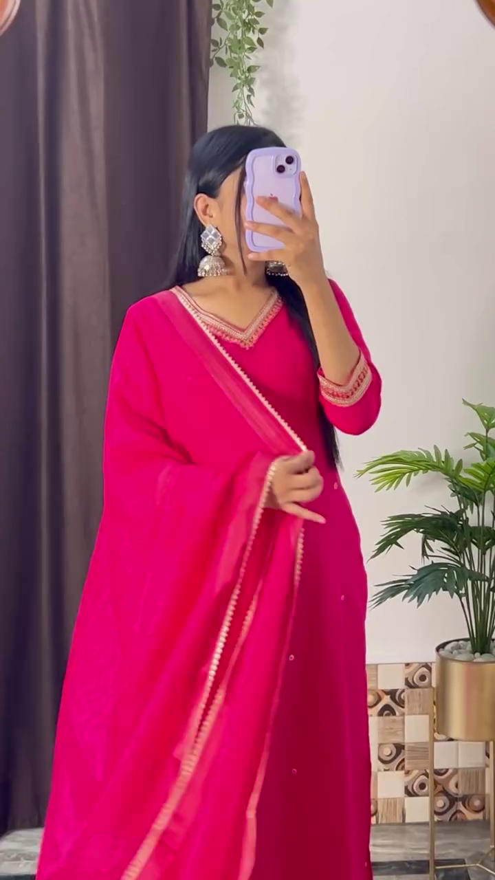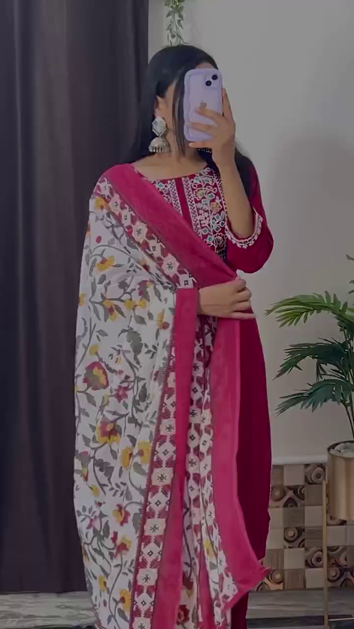 Elegant Magenta Embroidered Kurta Set with Floral Printed Dupatta – 8 Color Variants | Ethnic Wear for Women
