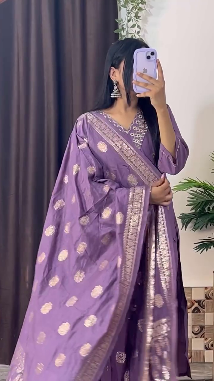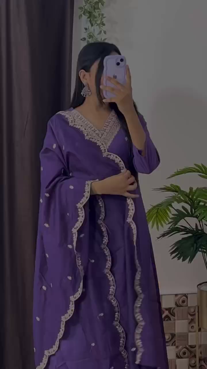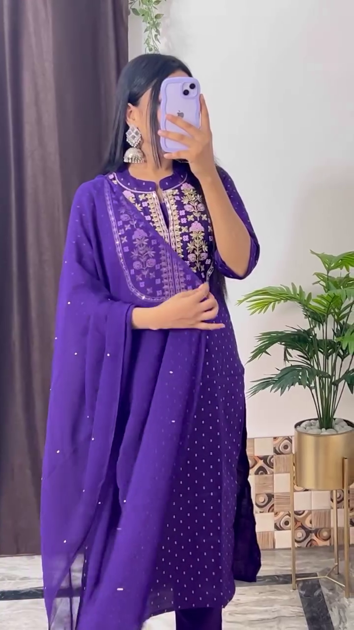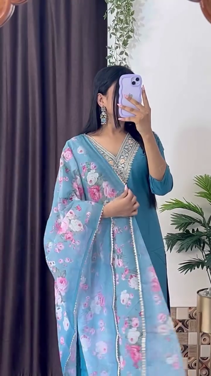 Elegant Magenta Embroidered Kurta Set with Floral Printed Dupatta – 8 Color Variants | Ethnic Wear for Women