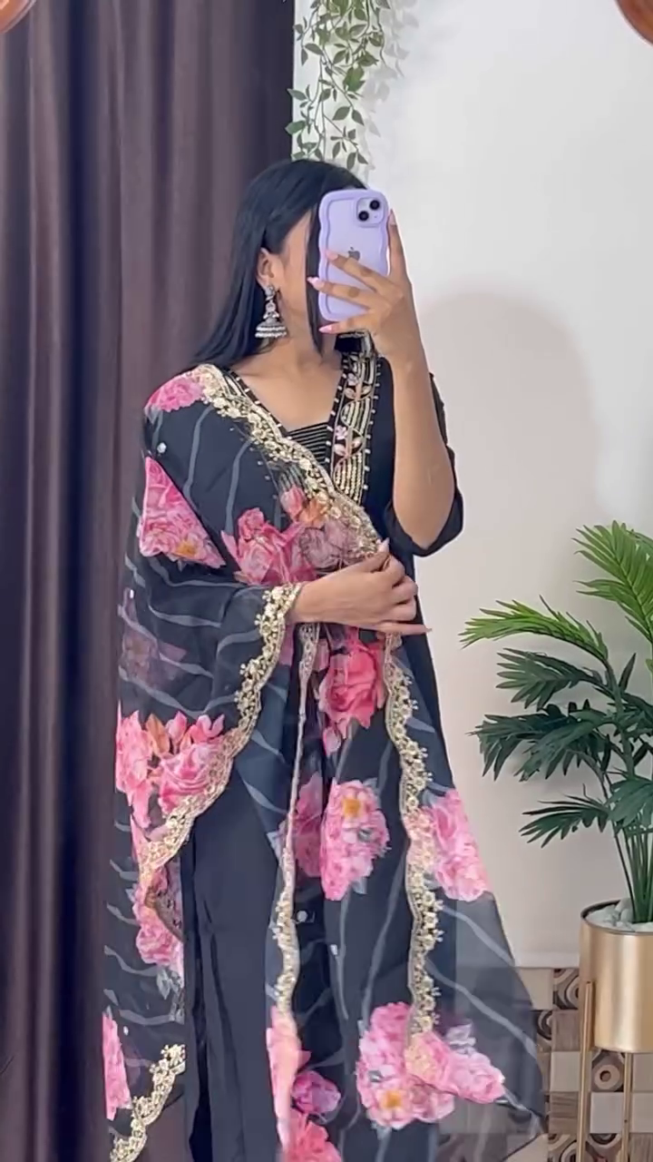 Dupatta: Lightweight floral print with detailed border