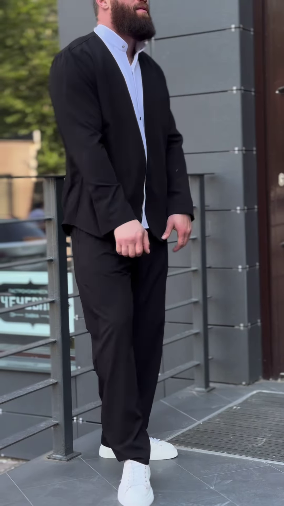 Whether featured in menswear capsule collections, boutique fashion reels, or COD campaign drops, this black stretchable shirt and gray pants combo delivers wearable elegance with retail-ready appeal.