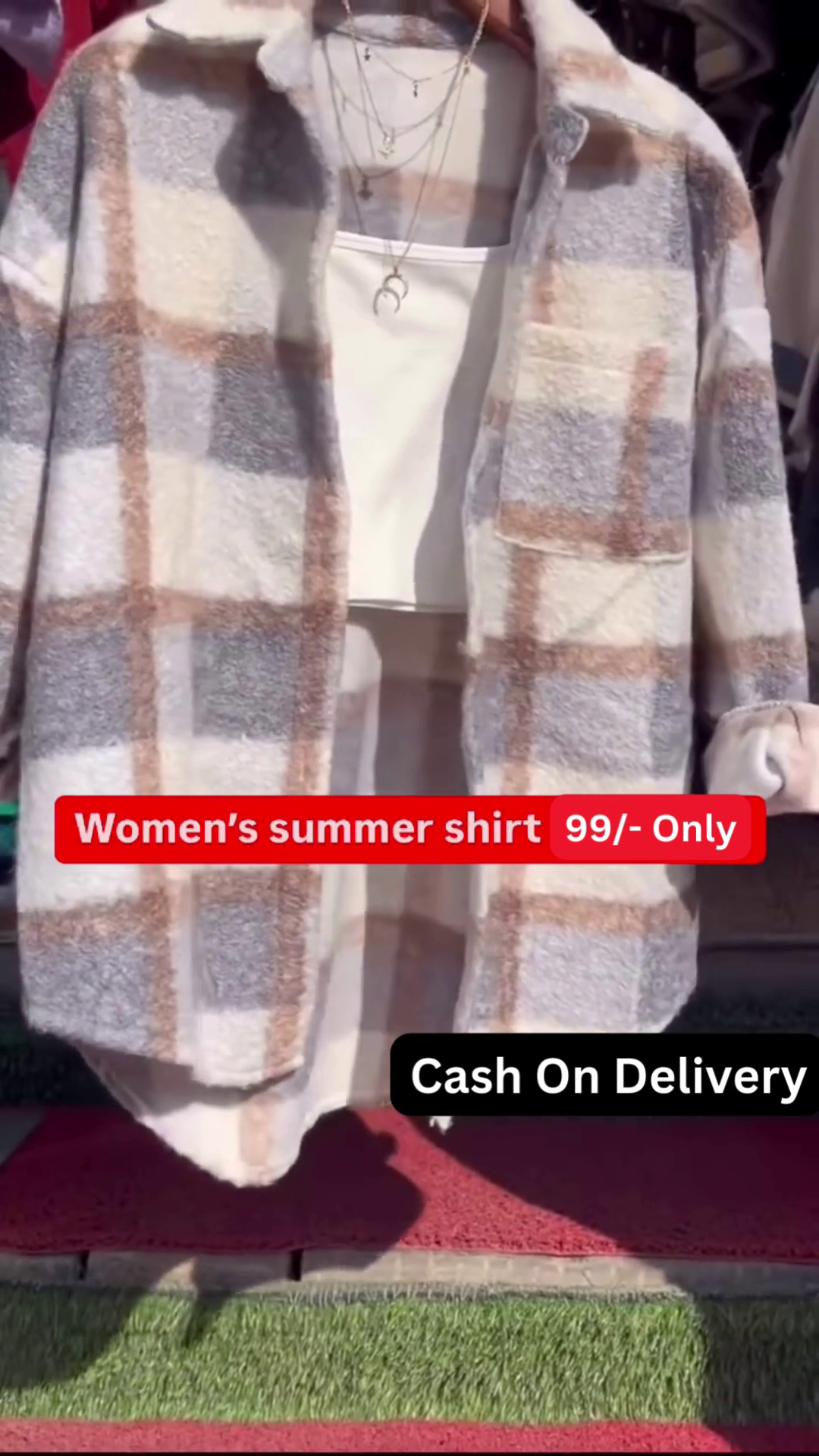 + Free ShippingThis image showcases a stylish layered women’s outfit, perfect for a relaxed yet fashionable look. The central piece is a soft, oversized plaid “shacket” – a garment that combines the style of a shirt with the warmth of a light jacket. The shacket features a muted color palette, blending shades of cream, light gray, and a subtle warm brown or taupe in a classic plaid pattern. The fabric appears to be a soft, possibly brushed texture, suggesting comfort and a cozy feel. The shacket is worn open, revealing a light-colored, possibly cream or off-white, square-neck top underneath. This layering adds dimension to the outfit and allows for versatility in different temperatures.