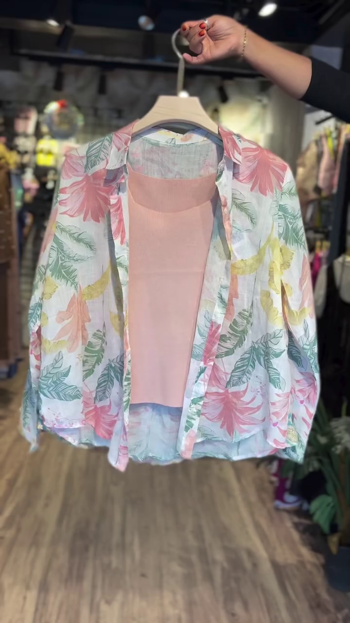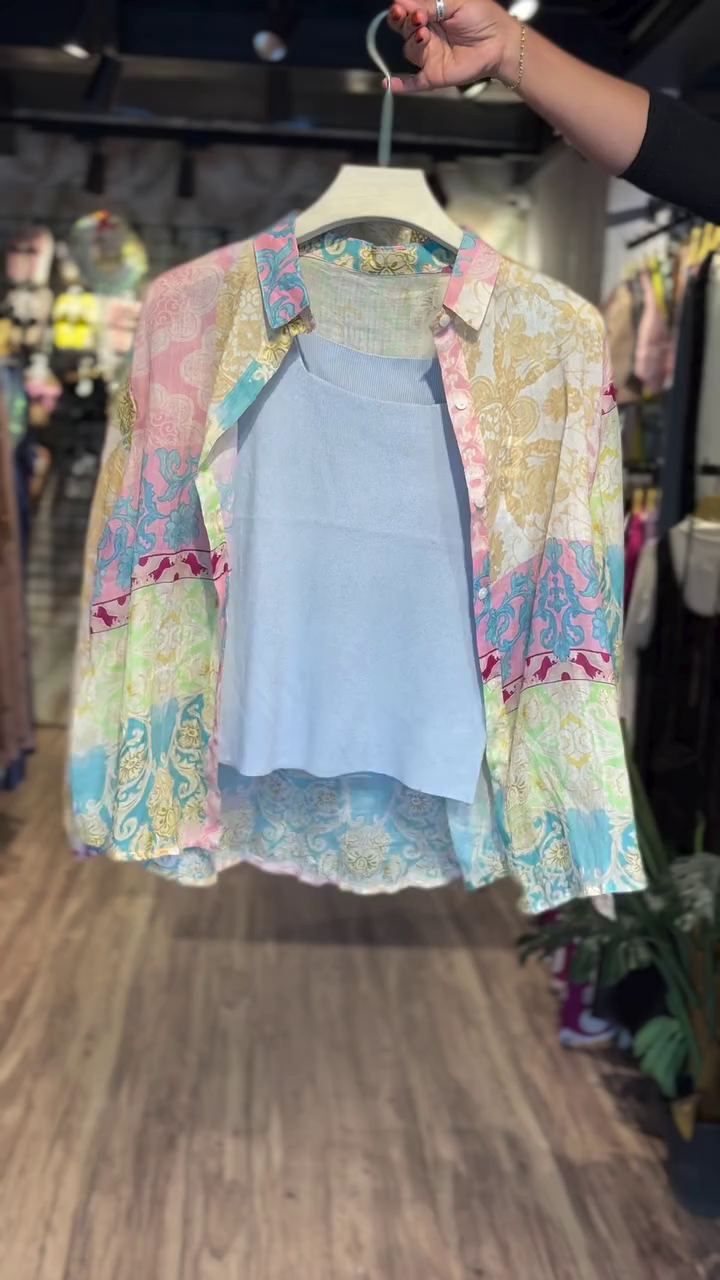 Trendy Pastel Patchwork Sheer Shirt with Inner Camisole – Boho Chic Style | Lightweight Summer Layer