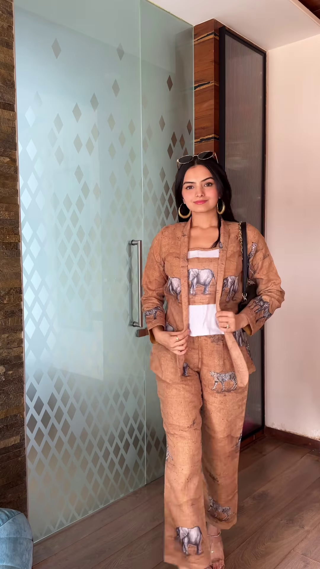 The overall impression of this set is one of modern elegance with a touch of artistic flair. The detailed embroidery on the jacket elevates the classic silhouette, while the clean lines of the white trousers provide a sophisticated foundation. This outfit would be suitable for various occasions, from stylish social events to more formal gatherings where making a fashionable statement is desired. The combination of the detailed jacket and the minimalist trousers creates a balanced and eye-catching ensemble. The gold-toned belt buckle adds a subtle touch of luxury to the overall look.