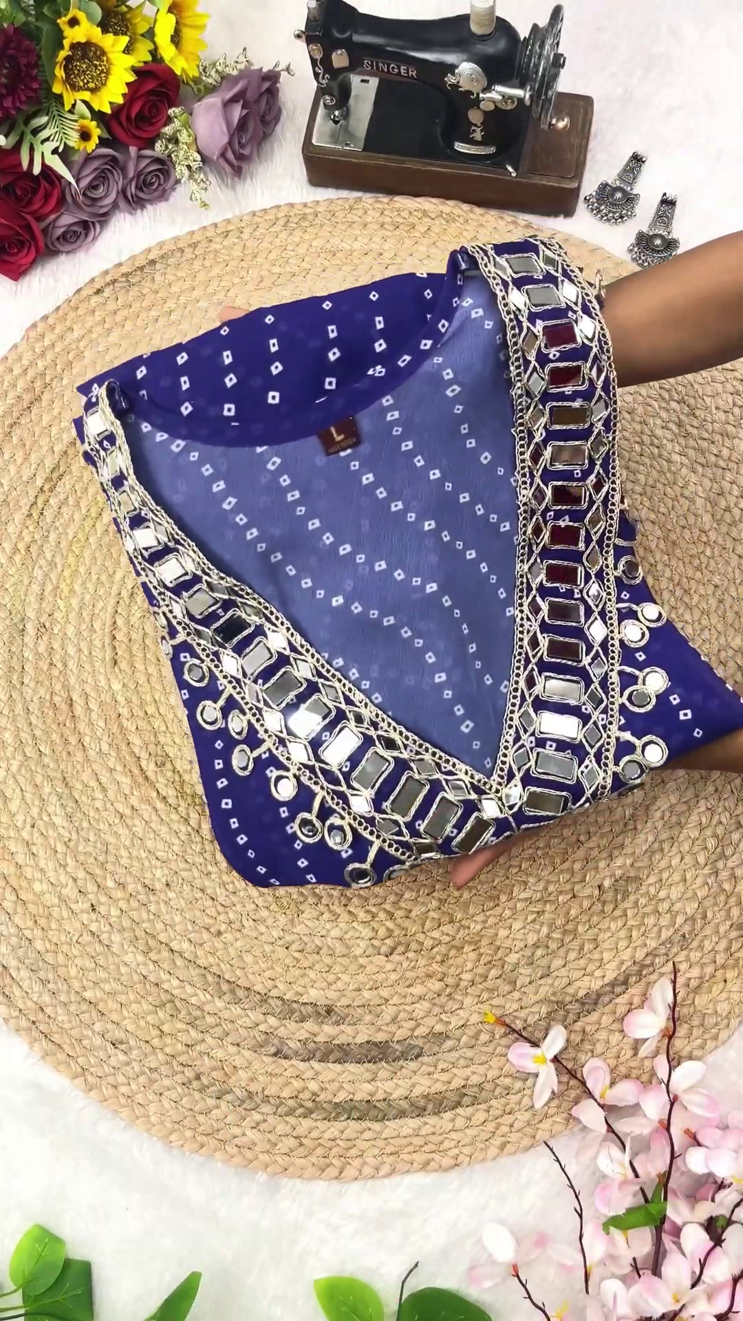 Dry Clean Only: Required to protect the hand-placed mirrors and the integrity of the Bandhani print.
